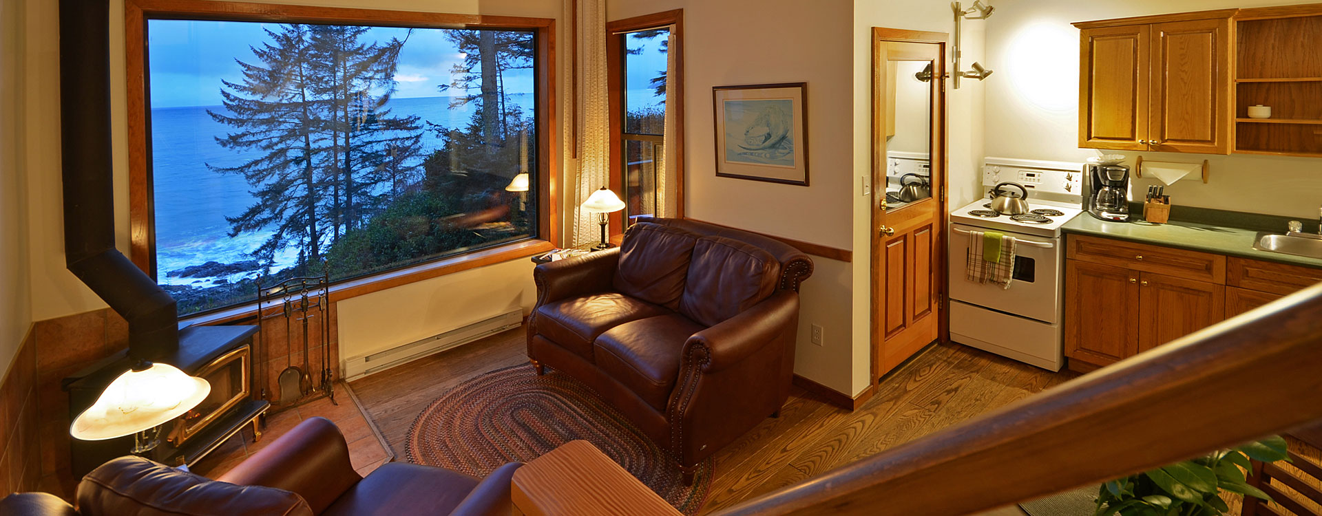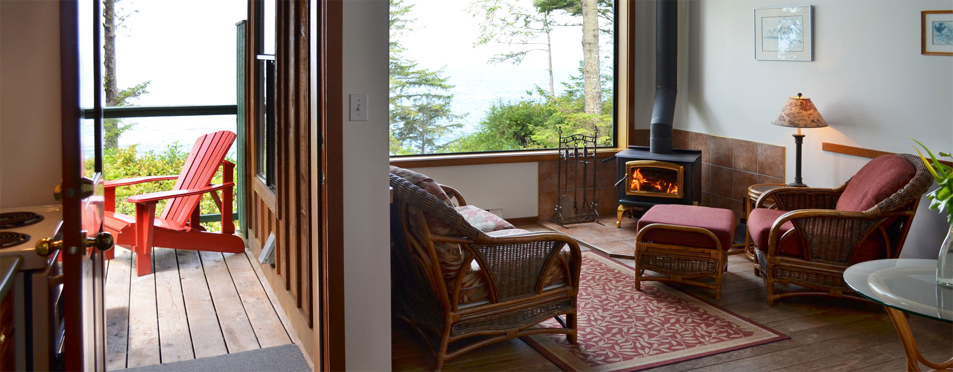 These private, soundproofed duplex units have main floor living spaces with full kitchens, full bathrooms and a dining space for 2. They both have open-concept upper floor lofts with king-sized beds for sleeping. The bathrooms are spacious with their own stand up showers and separate soaker tubs. Impressive 2-storey windows overlook the view, ensuring you can enjoy the scenery even from the upper floor. Both units have glass-fronted wood-stoves on the main floor. They both have private hot tubs on private decks with views facing south overlooking the ocean and mountains. Easy access parking.