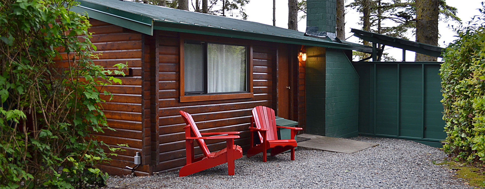 Cabin 11 is a 2-bedroom, 1-bathroom log cabin. One bedroom contains a double-sized bed, one bedroom has a king-sized bed. The spacious bathroom contains a large, deep soaker-tub and separate stand-up shower. Enjoy the view from the large, full kitchen and dining area with space for 4 people, as well as the living room that contains a beautiful stone fireplace. The private deck and 4-person hot tub face west, out towards the open Pacific Ocean. Easy access parking.