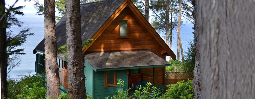 This cliff-side log cabin has two separate sleeping areas, both with 1 queen-sized bed. There is 1 bedroom on the main floor, and one sleeping area upstairs in an open-concept loft. There is 1 spacious bathroom with a large soaker tub, and a separate stand-up shower. There is a full kitchen with a dining space for 4 people, and large living room space with an open fireplace. The private deck contains a 4-person hot tub, with an incredible view overlooking the ocean and mountains. Parking approximately 50 steps above the cabin.